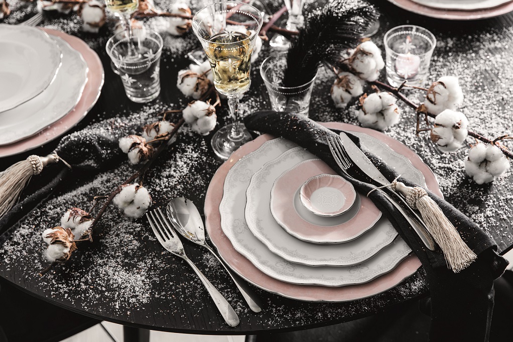 Porcelana VICTORIA Fyrklövern stanowi kwintesencję luksusu, nieodzownego przy szczególnych okazjach. A takich przecież w karnawale nie brakuje! Kolekcji VICTORIA Fyrklövern warto zapewnić towarzystwo złota, brokatu i różu. Dla tak bogatych dekoracji najlepszym tłem będzie szary, lniany obrus. Gdy rozłożymy na nim złoty bieżnik, nabierze on zupełnie nowego charakteru. Efektu dopełnią girlandy, rozrzucone błyszczące gwiazdki, kawałki koronki, użyte jako podkładka pod sztućce oraz niskie wazony, wypełnione białymi różami. Pozostaje czekać na gości i wspólnie wznieść toast za pomyślność. To będzie niezapomniane przyjęcie!